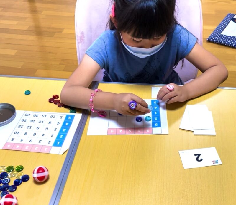 かけ算三目並べは一年生の子には少し難しかったかなと思いましたが、私と対戦し全勝。最終的に先生が勝つまでやってあげるという慈悲までかけていただきました。優しいお方です。かけ算を覚えさせるために、私の番の行動もやらせていましたが『自分でやって!』と怒られる始末。笑 次からは自分のことは自分でしようと1つ成長できました。私が。
