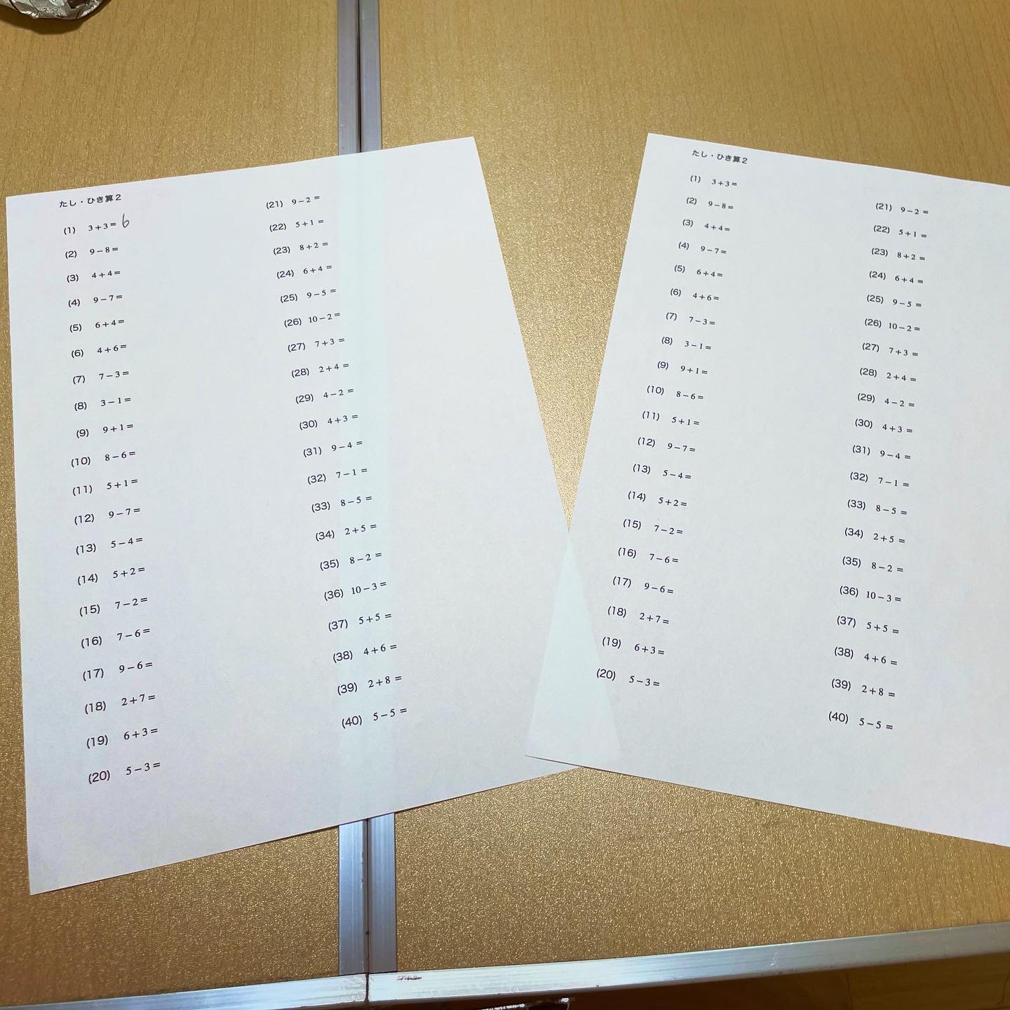 40問あり学年にあわせた簡単な四則演算ばかりで解ける事は前提で計算スピードを上げるためにタイムアタックを行っています