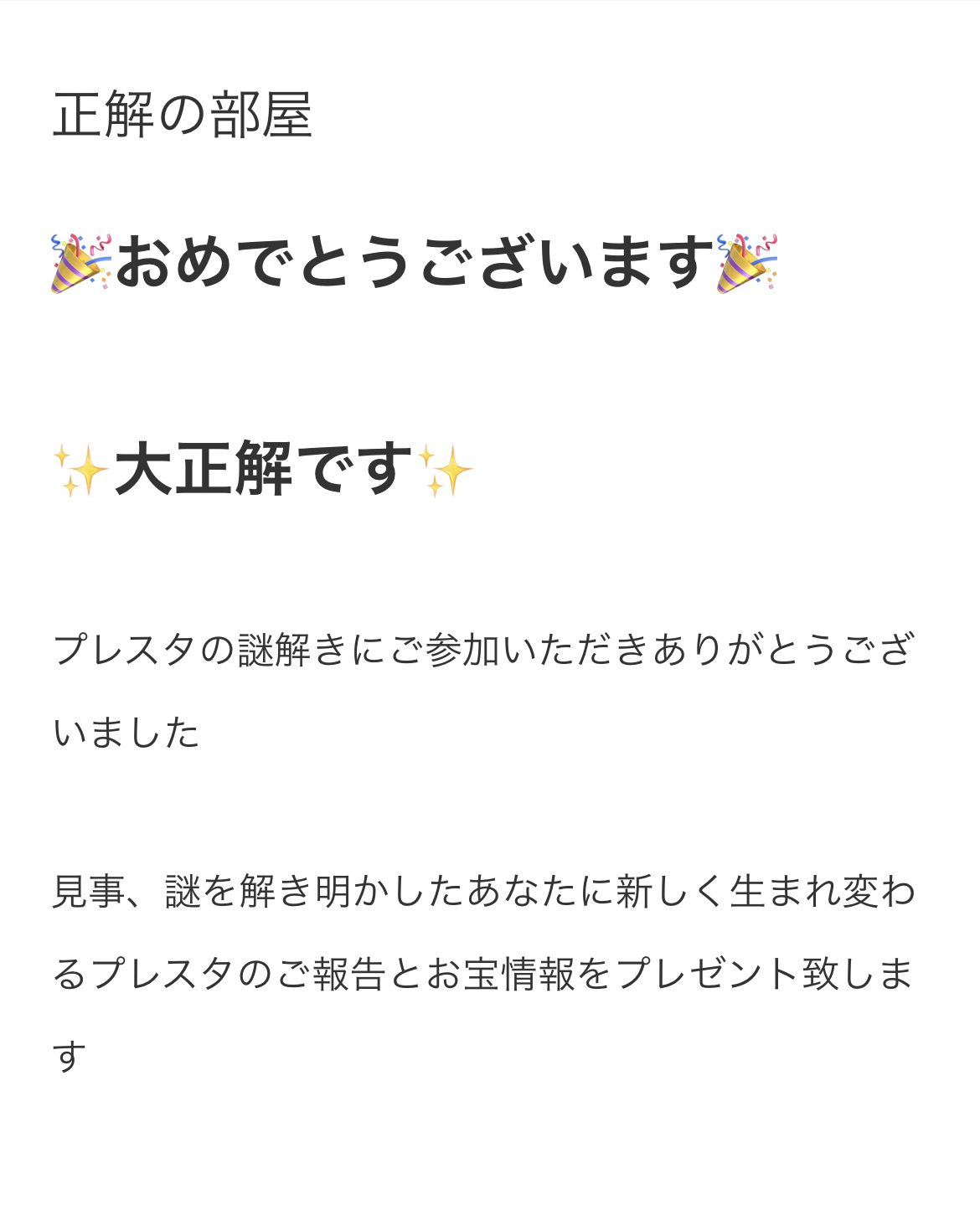 チラシの裏面にあった謎を解き、その答えをこのページのURLに追加で書き込む事でお宝の部屋へ行くことが出来ます