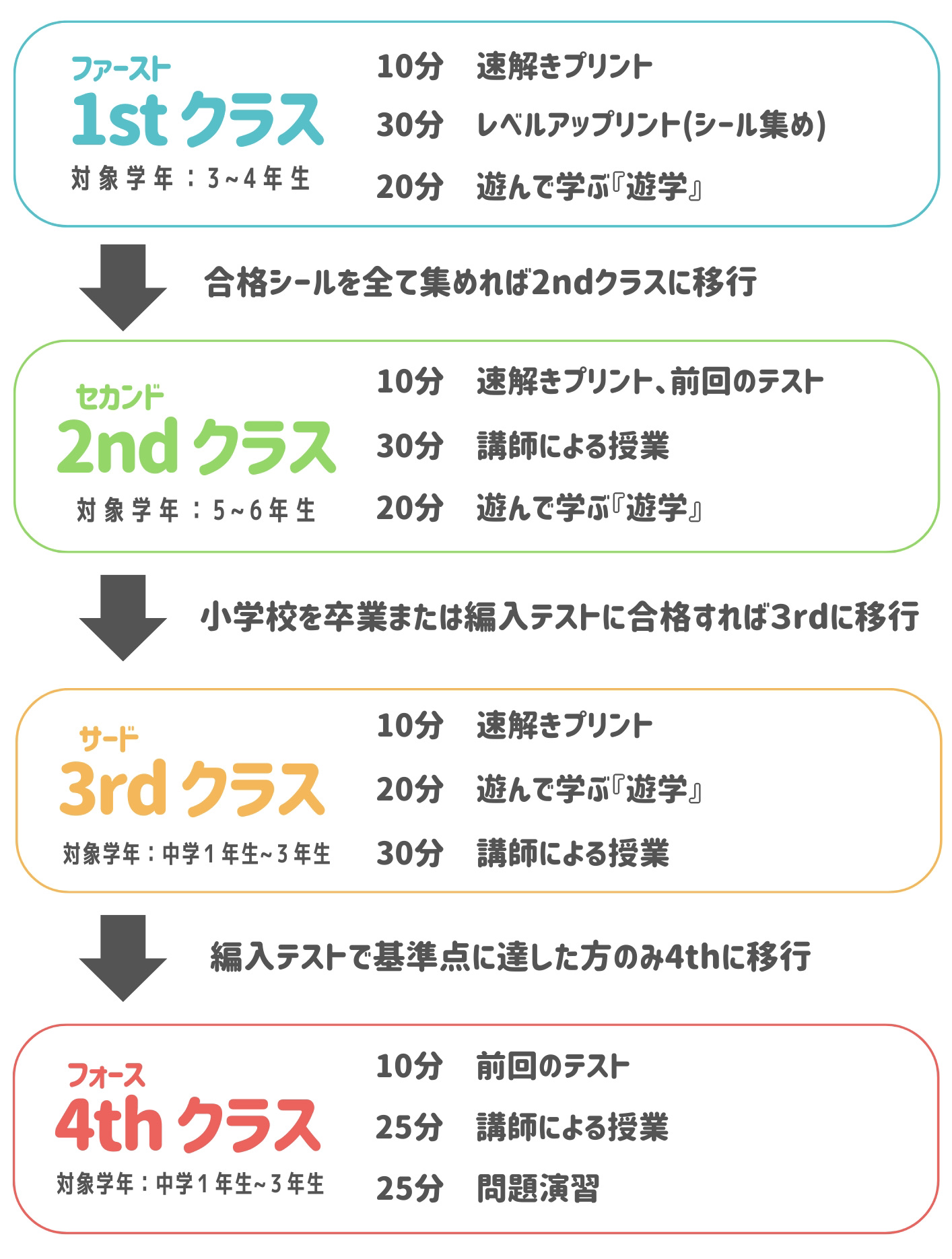 1st→2nd→3rd→4thという順にクラスが上がっていきます