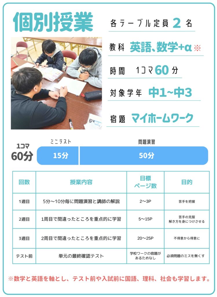 中学1年生〜中学3年生 個別授業